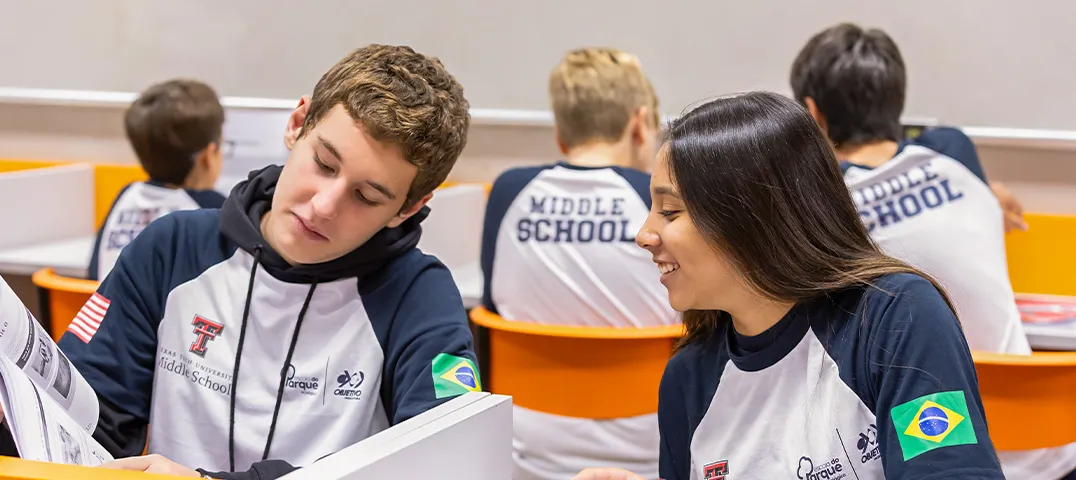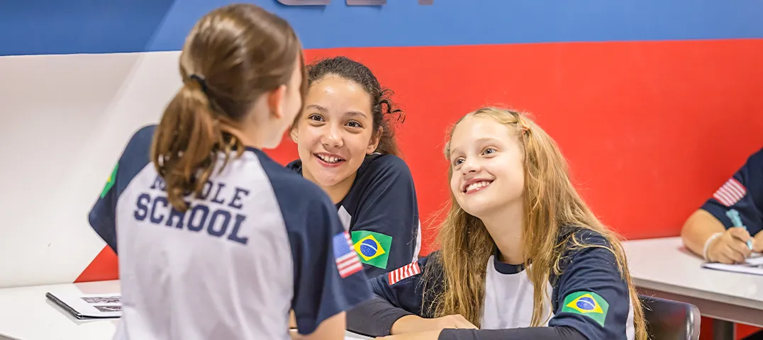 Alunos do 6º aos 8º anos podem optar pela imersão no idioma inglês, contratado a parte, em período oposto, o Middle School. Com 4 aulas semanais, integramos os alunos ao modelo americano de ensino.